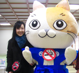 禁煙工房のグッズデザインと、Shopサイトの運営をしております、平賀典子と申します。「禁煙・受動喫煙防止キャラクター すわにゃん(©禁煙工房)」と一緒に、禁煙イベントにも出没しています。